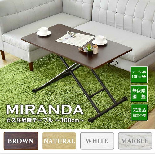 ガス圧昇降式テーブル 幅100cm 完成品 テーブル 昇降テーブル 昇降式 高さ調節 ガス圧 無段階 昇降テーブル リフティングテーブル ダイニングテーブル ローテーブル センターテーブル リビングテーブル デスク 大理石調 北欧 おしゃれ ミランダ100×55 送料無料