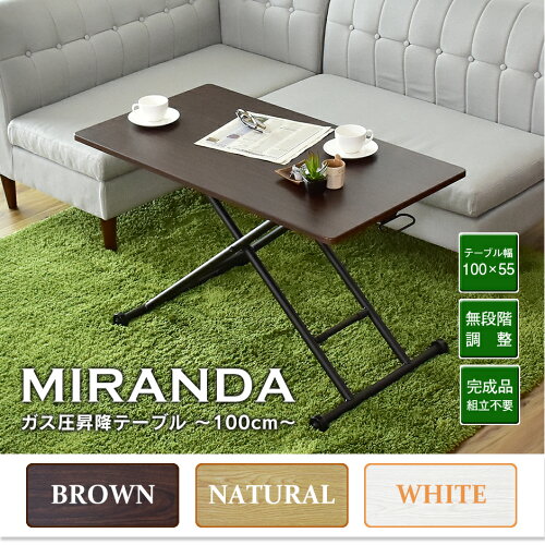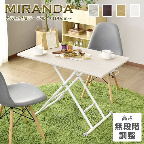 ガス圧昇降式テーブル 幅100cm 完成品 テーブル 昇降テーブル 昇降式 高さ調節 ガス圧 無段階 昇降テーブル リフティングテーブル ダイニングテーブル ローテーブル センターテーブル リビングテーブル デスク ミランダ100×55 送料無料